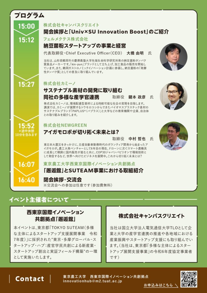 ※本イベントの主催者は「東京農工大学西東京国際イノベーション共創拠点・株式会社キャンパスクリエイト」です。