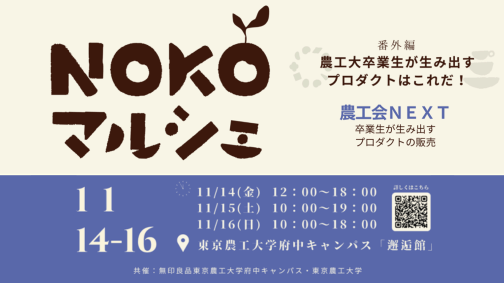 11月14日(金)~16日(日) NOKOマルシェ番外編 農工大卒業生が生み出すプロダクトはこれだ!