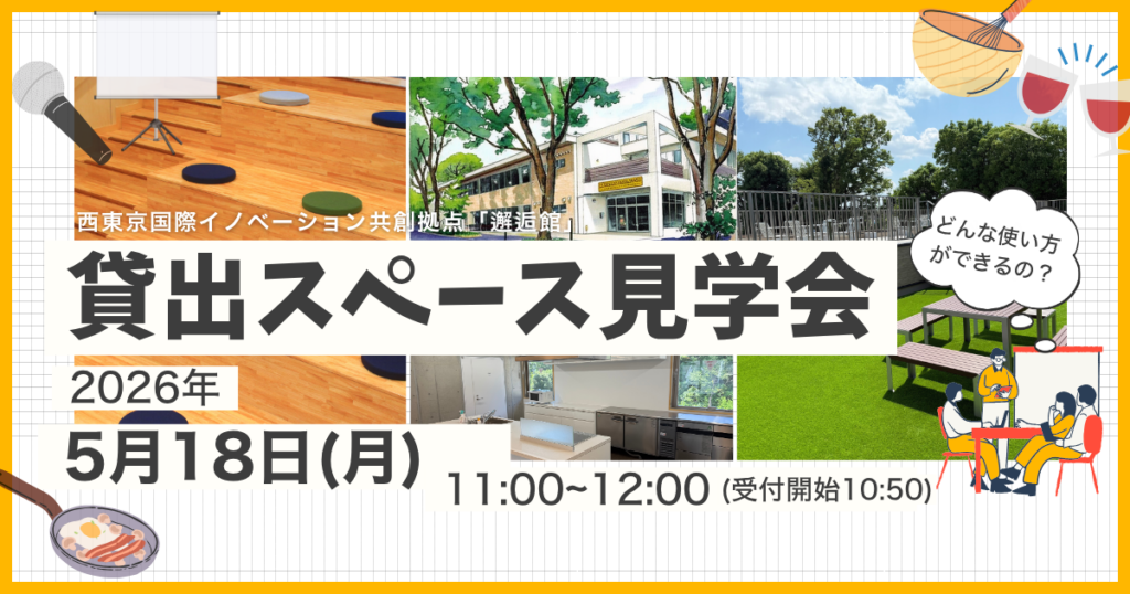 西東京国際イノベーション共創拠点「邂逅館(かいこうかん)」 貸出スペースで、見学会を開催いたします。既にご利用の計画を立てておられる方から、「どんなスペースなのか気になる!」という方まで、本拠点にご興味をお持ちの方はどなたでも参加可能です... -